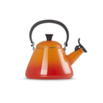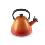 Чайник Le Creuset со свистком выполнен из толстостенной стали, покрытой твердой и прочной глянцевой эмалью. Его можно использовать на всех нагревательных поверхностях, включая индукционные. Чайник имеет широкое дно, что обеспечивает хороший контакт с источником нагрева, и как следствие – эффективное нагревание воды. Фактически, беспроводной чайник такой же эффективный, как электрический чайник. Чайник имеет жаропрочную ручку, которая остается прохладной на ощупь, и громкий свисток, который поднимается при наливании воды. Разметка вместимости воды находится на внешней стороне чайника, что позволяет избежать переливания.