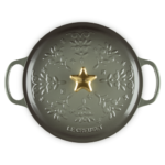 Кастрюля из Новогодней Коллекции обязательно вдохновит кулинаров на приготовление праздничных блюд! Она изготовлена из теплоемкого чугуна, который быстро прогревается по всему объему и долго сохраняет тепло. На чугун нанесена непроницаемая для воздействия пищевых кислот эмаль. Поэтому в кастрюле можно не только отваривать, жарить и тушить, но и мариновать и хранить сырые продукты. Для приготовления достаточно слабого или среднего нагрева – он нужен только для поддержания изначально заданной температуры. Дно и боковые стенки, а также крышка прогреваются одинаково, поэтому весь объем блюда даже без перемешивания достигает одинаковой степени готовности и не подгорает. Крышка имеет куполообразную конструкцию и устанавливается по внутреннему ободу кастрюли, что обеспечивает попадание капель влаги с крышки обратно в посуду. Ручка на крышке выполнена из нержавеющей стали и выдерживает температуру до 230°С.