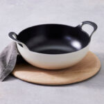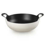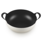 Чугунный сотейник оригинальной формы, напоминающей китайский вок, называется балти. Он предназначен для приготовления одной из разновидностей карри, с одноименным названием, которая стала очень популярна в Европе. Родиной балти считаются северо-западные провинции Индии на границе с Пакистаном. На родине это блюдо едят прямо из кастрюли, обмакивая в соус лепешки чапати, наан или паратха. Сотейник изготовлен из теплоемкого чугуна, который быстро прогревается по всему объему и долго сохраняет тепло. На чугун нанесена непроницаемая для воздействия пищевых кислот эмаль. Для приготовления достаточно слабого или среднего нагрева – он нужен только для поддержания изначально заданной температуры. Дно и боковые стенки прогреваются одинаково, поэтому весь объем блюда достигает одинаковой степени готовности и не подгорает.